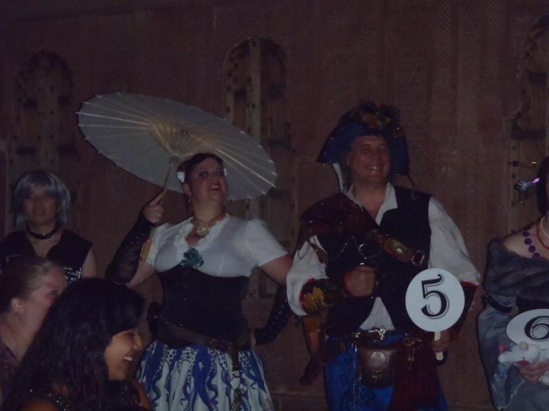 Steampunk fashion is less common than straight anime in Japanese street fashion or cosplay, but it does exist in a very visible way and is ever present in their art, comics, and anime. The show was judged on quality and attention to detail in the “costume” and overall presentation on the runway. There were not enough number labels for each contestant, so some that came as a couple were judged that way as well, such as the grand prize winners, Adm. Ramon Leon del Mar and V Adm Radha Narasimhan.